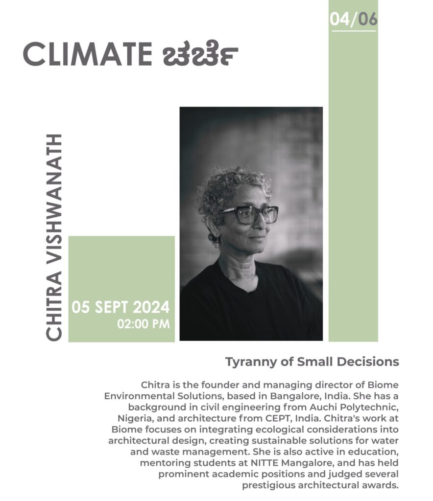 This Climate Charche Lecture Series for architecture students recognises them as professionals who will soon be making critical decisions about the environment – built and otherwise. The findings of another recent survey shared that, current day climate education tends to emphasise facts over critical thinking, leading to under confidence in understanding climate change and mitigation strategies. Thus, rather than merely offer a theoretical understanding of the climate situation, the effort here was to seed a new climate lens for the students in how they view, think and understand the environment.