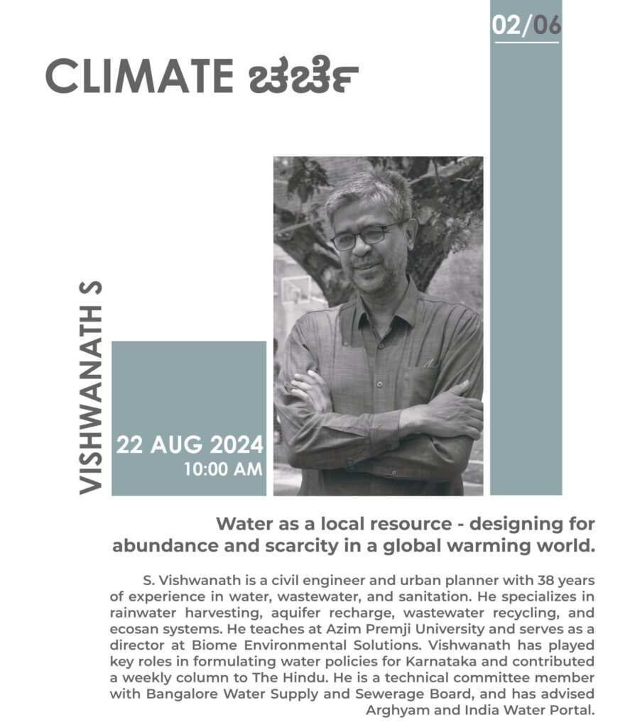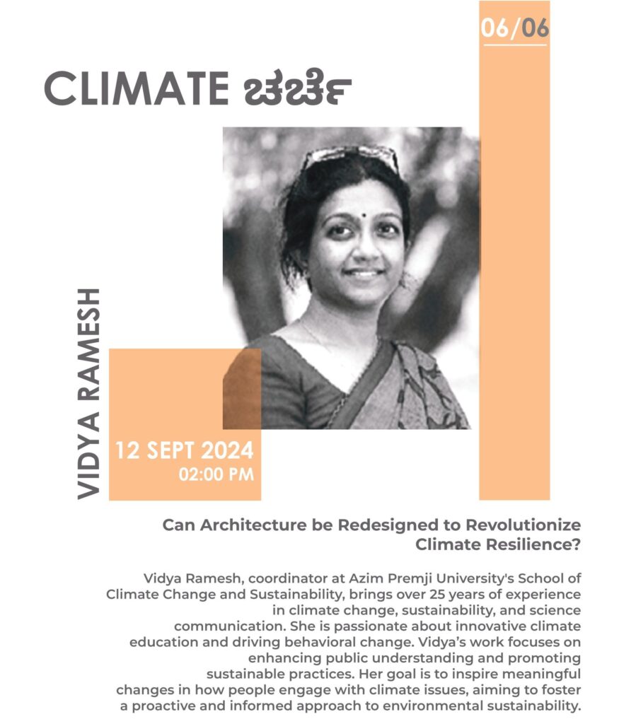 was started in 2015 with a vision to nurture ecologically responsible professionals to address the challenges of contemporary human habitat through a maker-centered approach. The school focuses on promoting collaborative learning, through an elaborate curriculum in a highly interactive teaching-learning environment. The Director of CMRUSoA – Prof Muralidhar K and the faculty at SoA have played an active role in planning and executing the Climate Charche Lecture series, along with BSF.